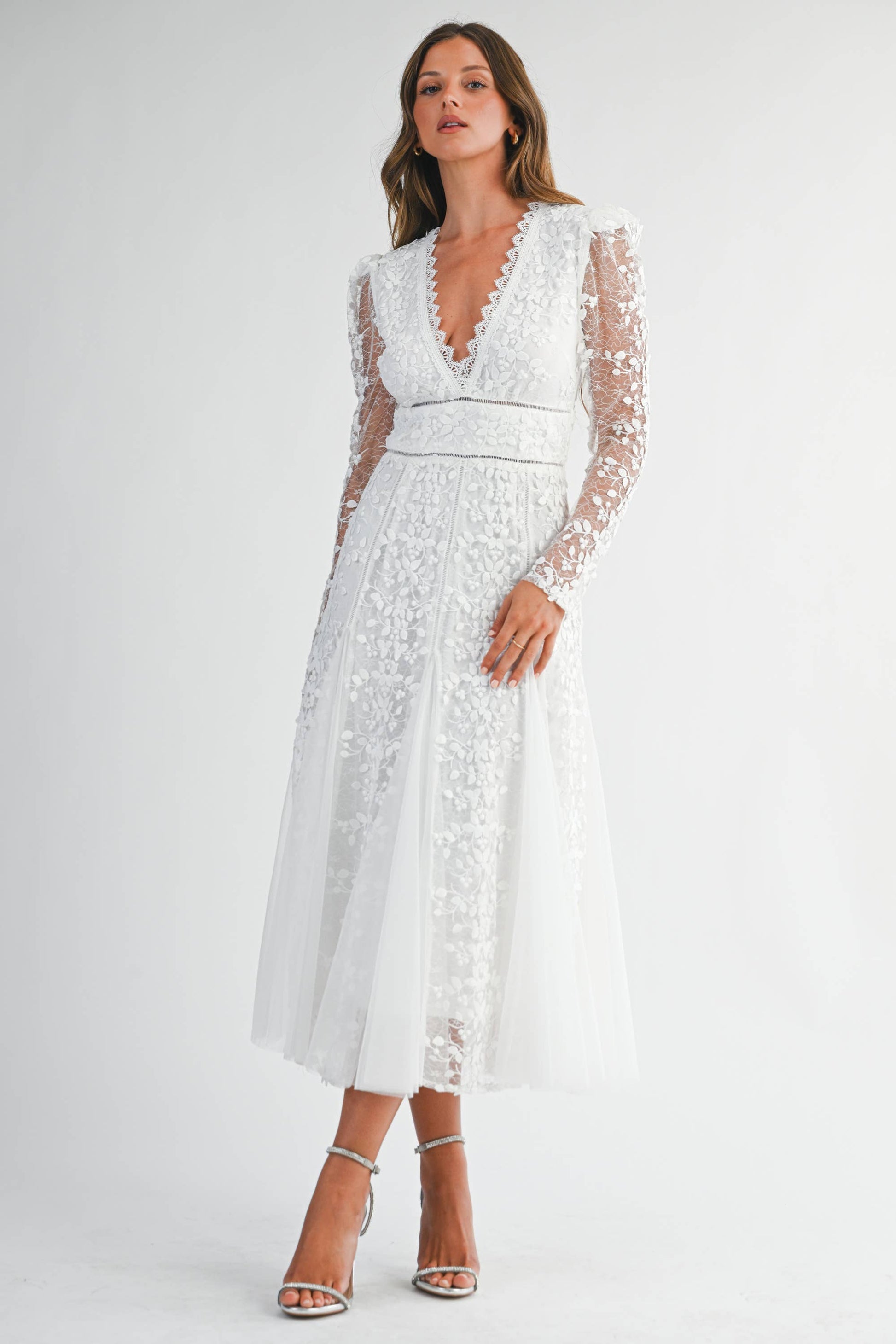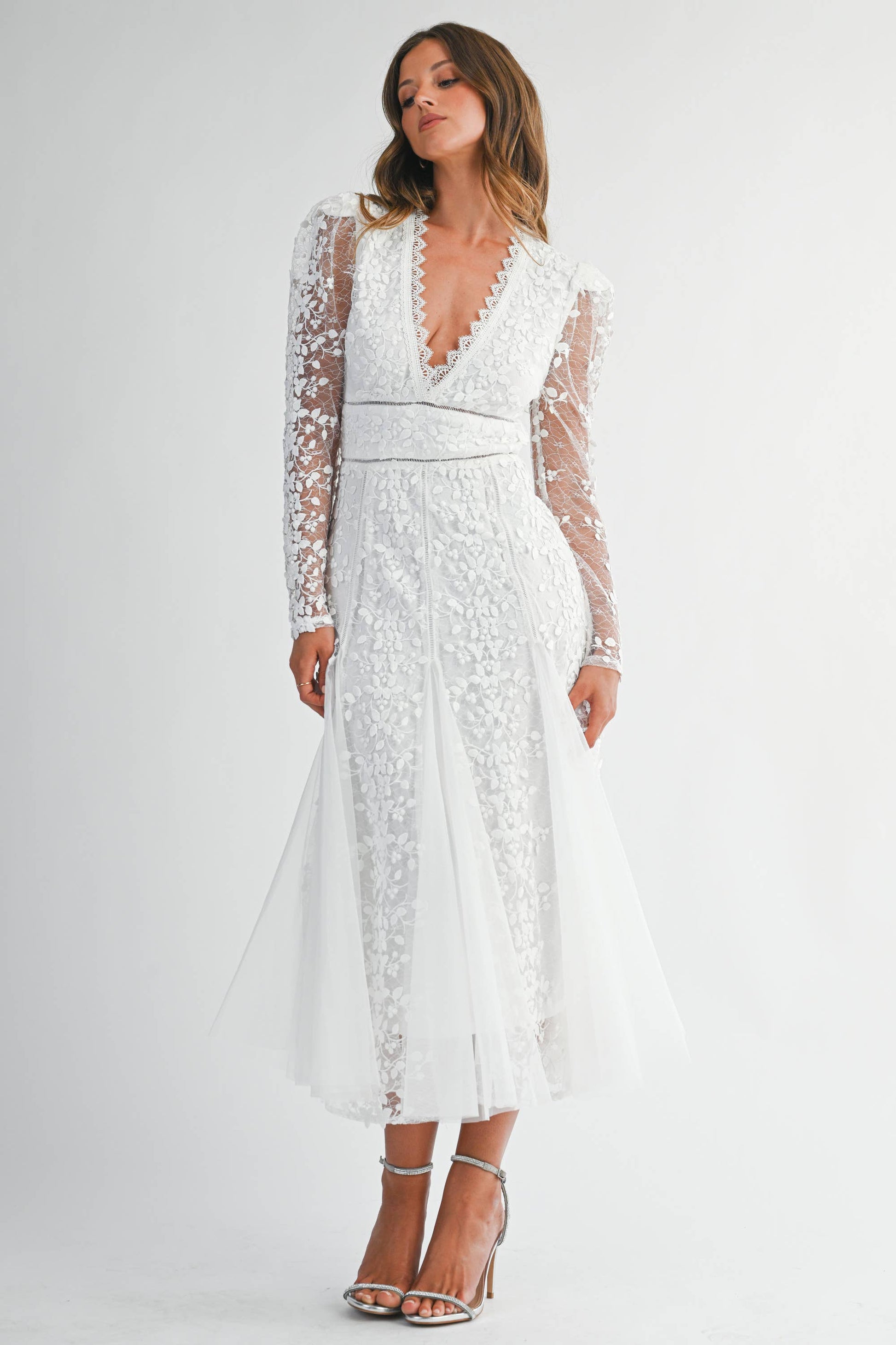 White Floral Embroidered Lace A-Line Dress